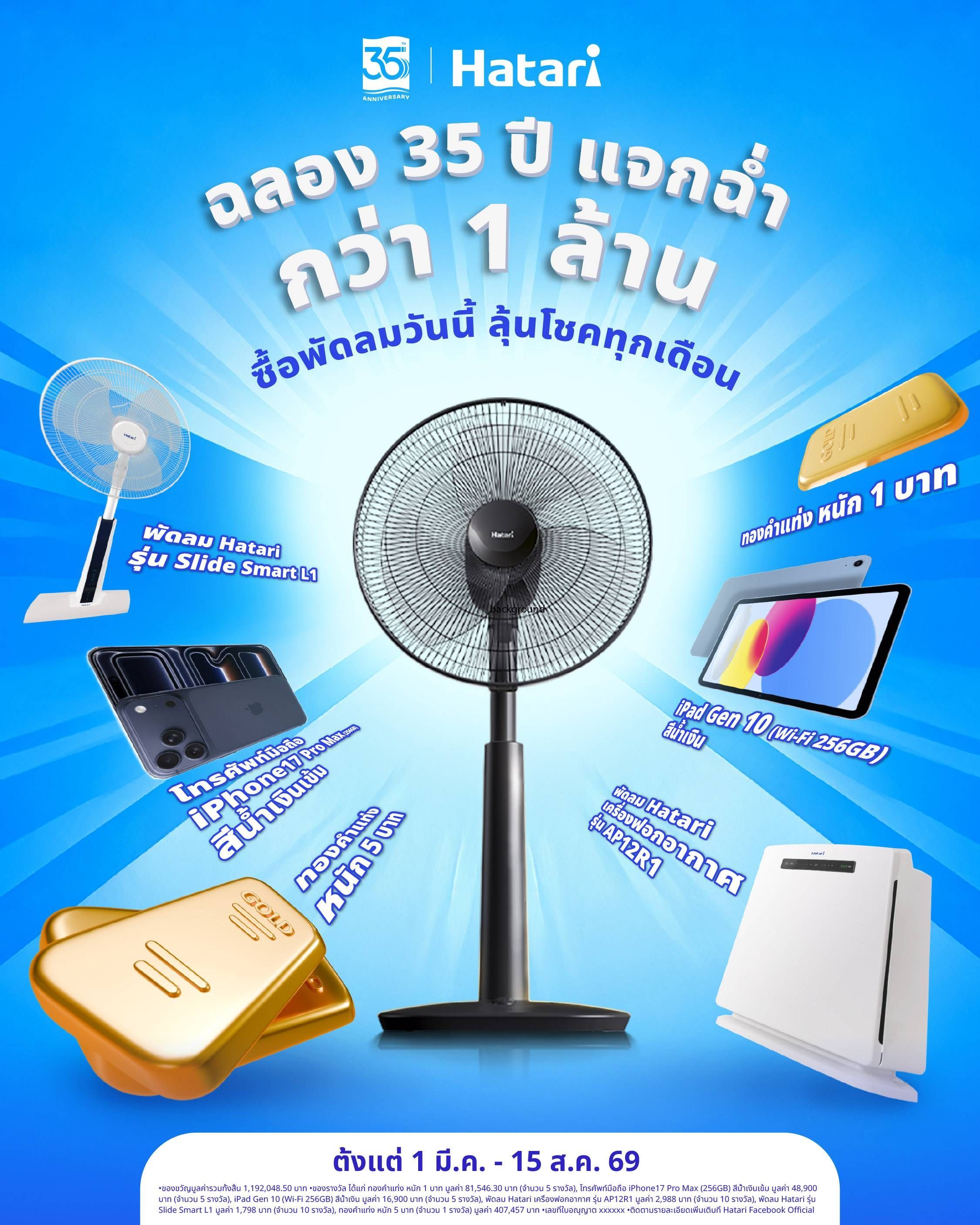 - เมื่อซื้อสินค้า Hatari ทุกรุ่น จากทุกช่องทางทั่วประเทศ ครบทุก รับ ในการลุ้นรางวัล